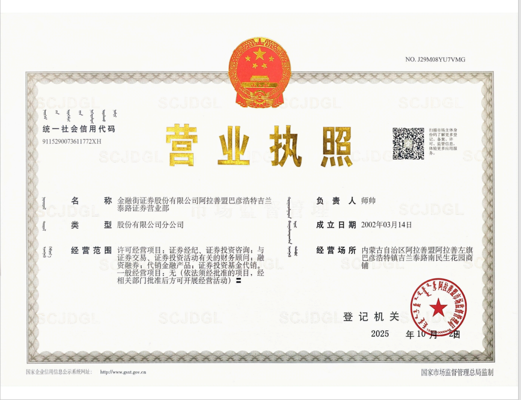 | 金融街證券股份有限公司阿拉善盟巴彥浩特吉蘭泰路證券營業(yè)部 |