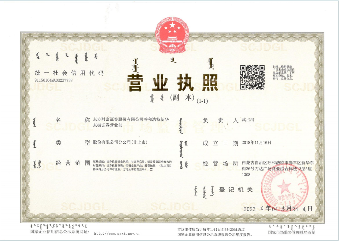 | 東方財(cái)富證券股份有限公司呼和浩特新華東街證券營業(yè)部 |